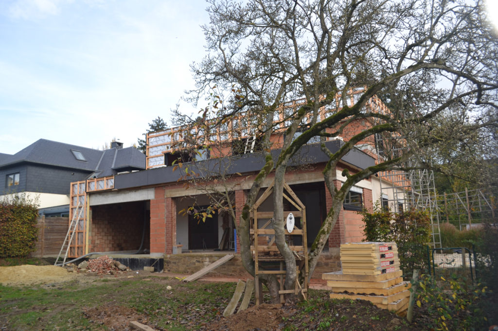 Nous avons réalisé l’agrandissement et le rehaussement d’une habitation à Gembloux, afin d’augmenter les volumes et d’améliorer le confort de vie.